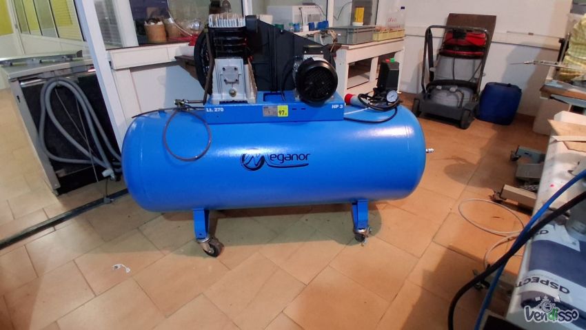 Compressor de ar com tanque de 270 litros e motor de 3 cavalos.