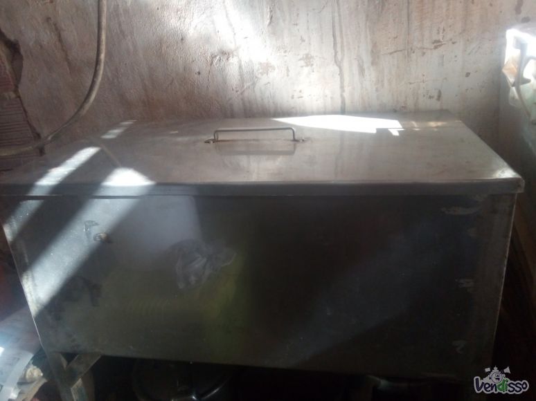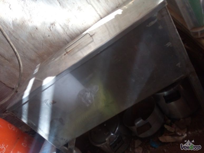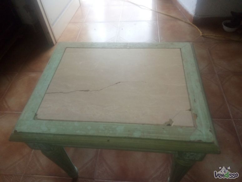 Vendo mesa verde pequena com base de pedra um pouco partida, salgadeira de inox nova