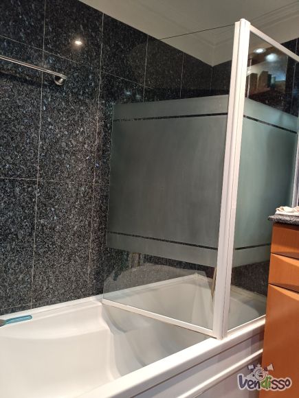 Resguardo de banheira branco em vidro serigrafado de 6mm e respectiva banheira. Vendo conjunto por €150, ou em separado.