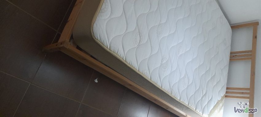 Cama de casal completa de pinho com colchão ortopédico 1.40 Largura por 2metros cumprimento.