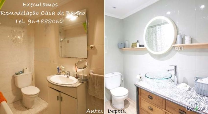 ⚒️ Fazemos Remodelações de casas de banho pequenas e grandes, parciais ou completas. Desde uma simples substituição da banheira por uma cabine de duche até à substituição integral de todas as louças sanitárias, canalização, electricidade, azulejos e chão.
