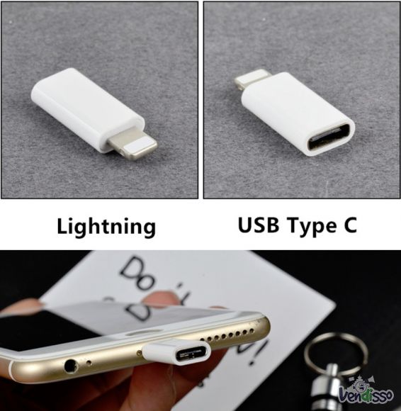 Usb-C Tipo C Para Fêmea Adaptador De Carregador De Relâmpago Macho Para Iphone X 8 7 6 5S se