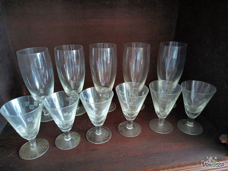 Onze copos de vinho e de champanhe, em vidro.