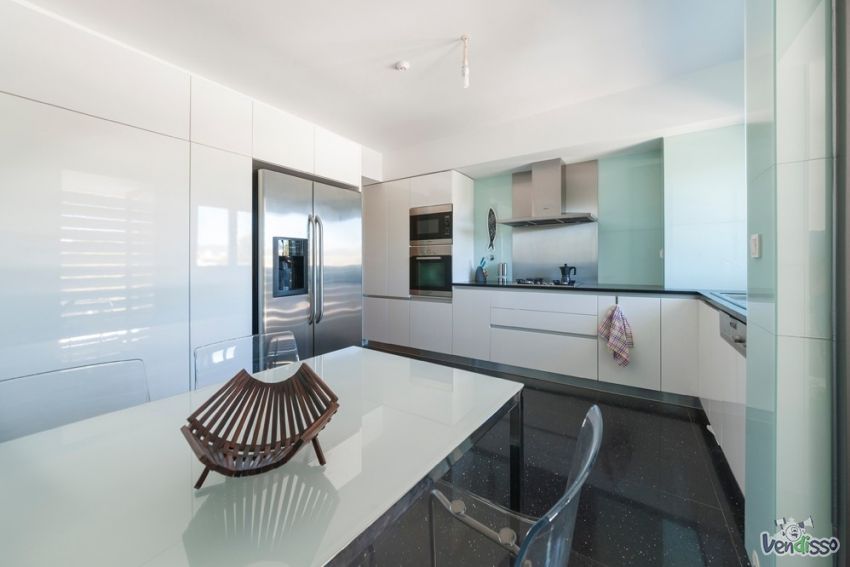 Hall entrada 8m2; sala ( 27m2) com acesso para ótima varanda (27m2) com alguma vista de mar, verde e sobre o jardim do condomínio, cozinha 20m2, totalmente equipada, zona estendal 3m2, lavabo social 3m2.