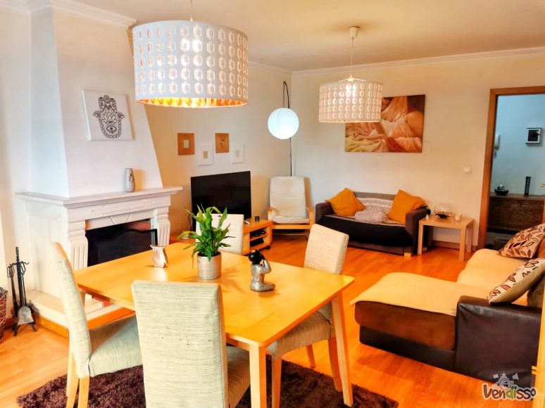 T2 com 120m2 em condomínio fechado com piscina coberta e aquecida. Uma sala e cozinha amplas com acesso à varanda. A sala tem lareira. O apartamento tem aspiração e aquecimento centrais. Tem um quarto com roupeiro embutido, uma casa banho, uma despensa e uma suite. A suite tem um pequeno quarto de vestir com dois roupeiros embutidos, uma casa banho e um quarto. Tem acesso a um lugar de garagem coberto e uma arrecadação. O condomínio tem um excelente pátio em calçada e um pequeno jardim junto do edifício da piscina, que tem balneários. Acesso à A8 e A21 em 5 minutos. O condomínio está próximo de escolas, zona comercial e zona verde e lazer.
