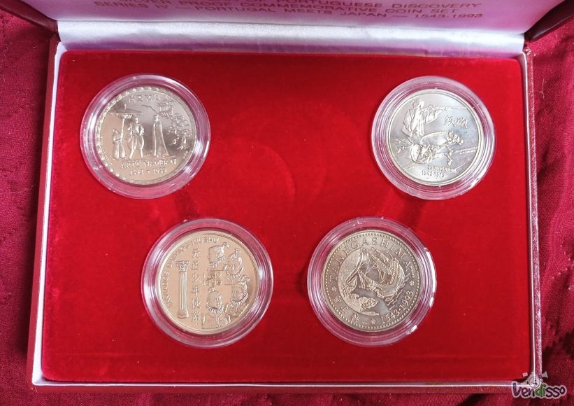 Conjunto de moedas comemorativas da série IV sobre os Descobrimentos Portugueses.