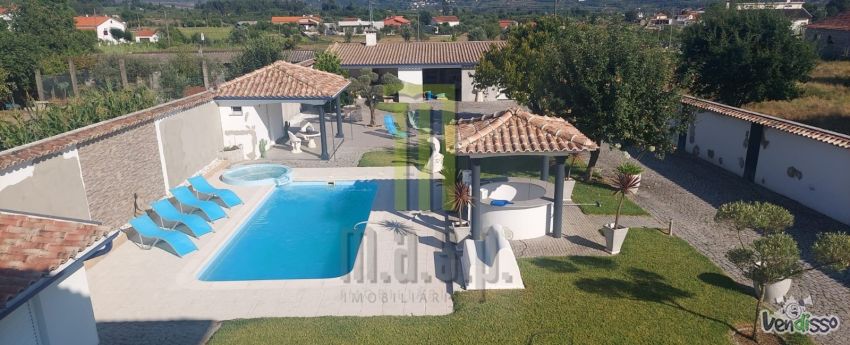 Esta extraordinária moradia T5, situada na aldeia de Ervedal da Beira, com vistas deslumbrantes para a Serra da Estrela e Caramulo, é uma casa independente que oferece o equilíbrio perfeito entre conforto e elegância. O r/c, desfruta de um espaçoso open space que integra uma cozinha totalmente equipada e uma sala com recuperador de calor, quarto com roupeiro embutido, casa de banho completa e um WC de serviço. O 1º piso é composto por um hall que distribui para três quartos com varanda, uma suite com duche de hidromassagem e closet, além de um escritório ideal para trabalhar a partir de casa. O sótão acessível por uma escada removível oferecendo mais espaço adicional para armazenamento. O exterior tem uma área de 1,350 m2 e é simplesmente encantador, possui uma piscina e jacuzzi convidam a momentos de lazer, balneários exteriores, bar e churrasqueira tornam este espaço perfeito para receber amigos e família. A zona técnica e as duas garagens amplas garantem funcionalidade e praticidade. Aquecimento central a gasóleo, vidros duplos, alarme, água da rede e poço com rega automática, além de um reservatório subterrâneo para aproveitamento das águas pluviais, esta moradia é tanto eficiente quanto sustentável. O quintal possui de algumas árvores de fruto que adiciona um toque rústico a este refúgio moderno.