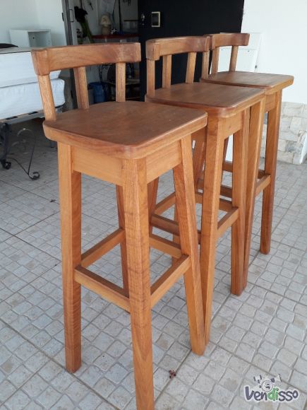 Vendo 3 (três) bancos em madeira exótica semi-novos tipo para balcão, com altura do acento a 0,90 cm e altura total de 1,05 m.