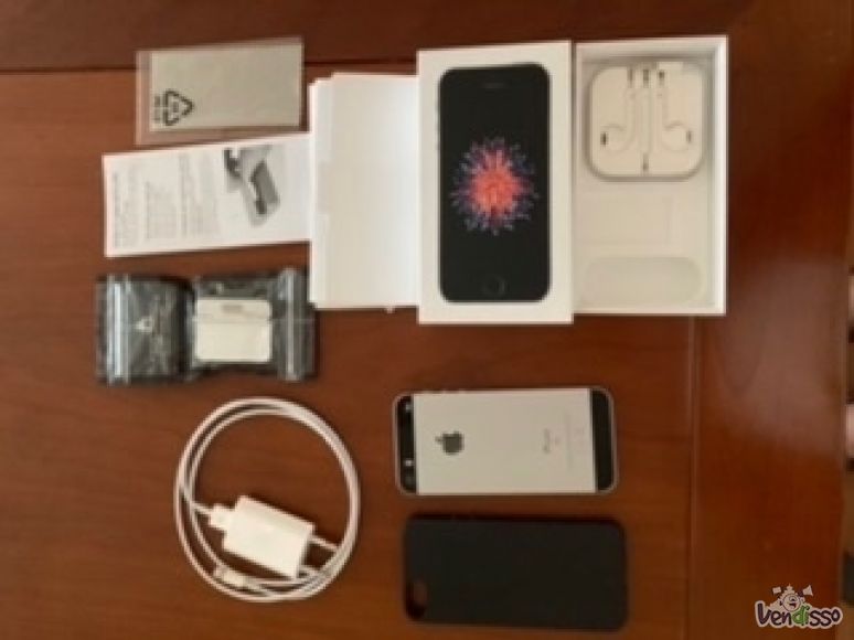 IPhone SE de 32GB em estado novo com película e capa mais phones, carregador de secretária e respetivo cabo com caixa original.
