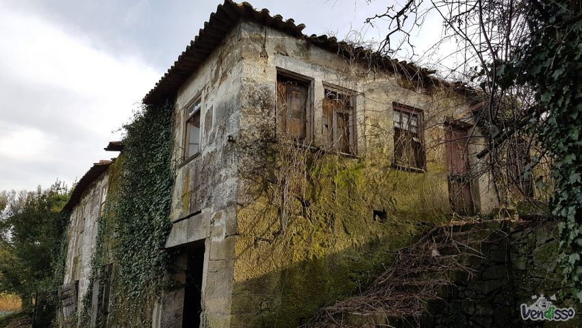Casa em ruína com 2 pisos, anexo para arrumos, capela e espigueiro.